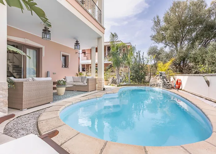 Stunning Villa Paola With Swimming Pool & Terrace! dairesi, Campulongu Plajı'a 3 km mesafedeki havuz manzarasına sahiptir. Daire, 2 yatak odası, 2 banyo odası ve ufak mutfaktan oluşur.